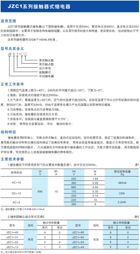 JZC1系列接触器式继电器